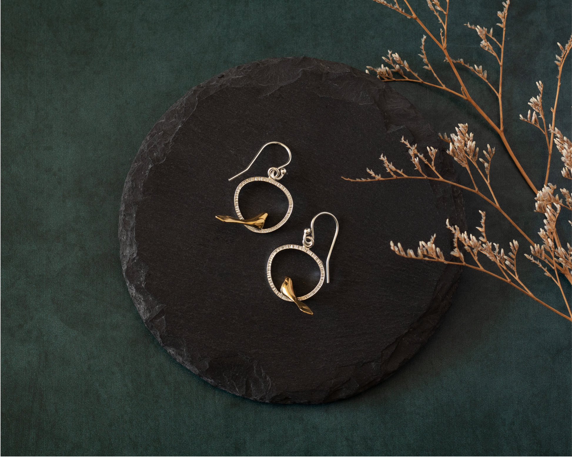Earrings Dimensions: Circle hoop with bird: 2 x 2 cm